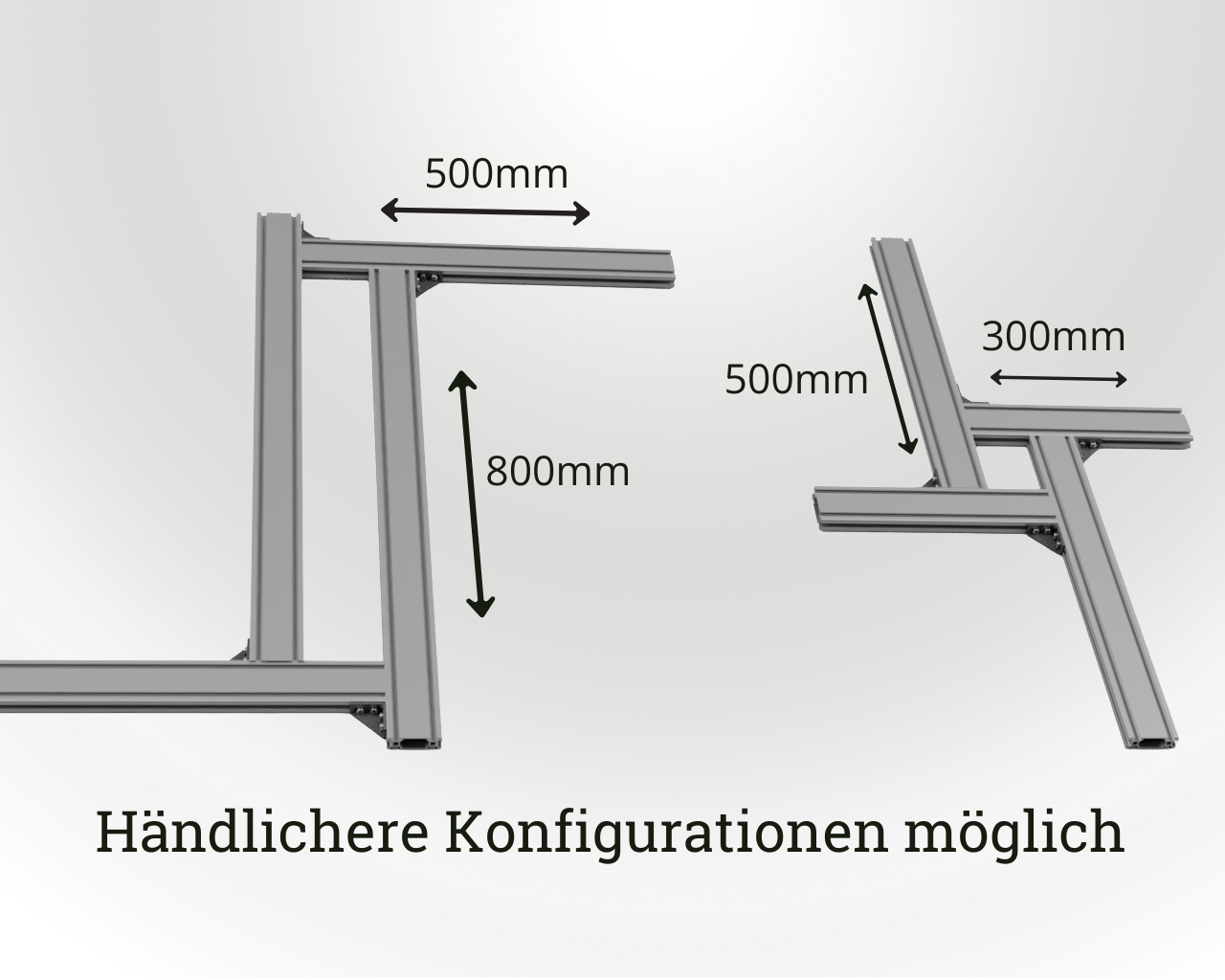 - Profile: 800mm (2 Stück), 500mm (2 Stück), 300 mm (2 Stück)
